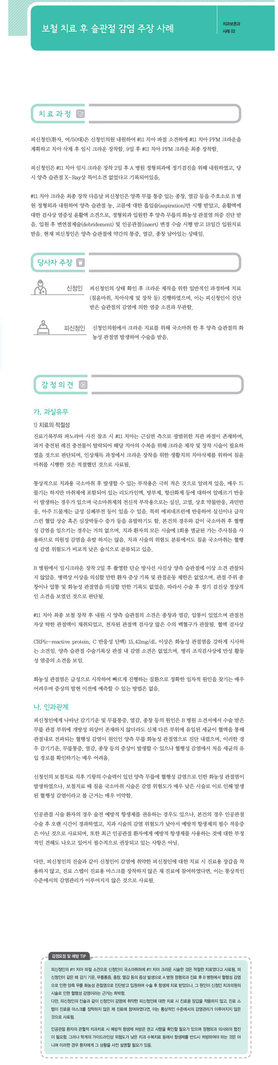 "[ 치과 ] [치과-치과보존과] 보철 치료 후 슬관절 감염 주장" 상세페이지