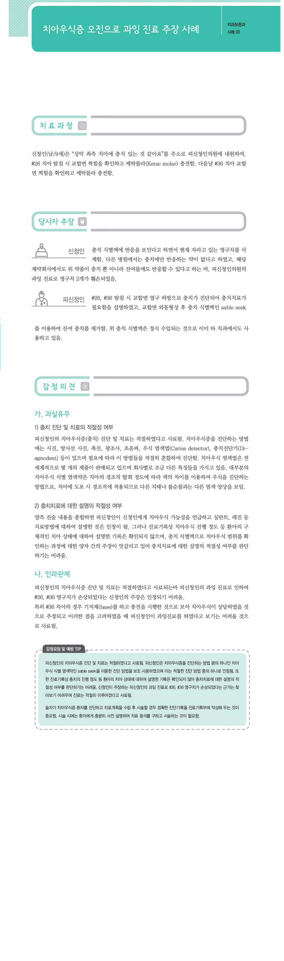 "[ 치과 ] [치과-치과보존과] 치아우식증 오진으로 과잉 진료 주장" 상세페이지
