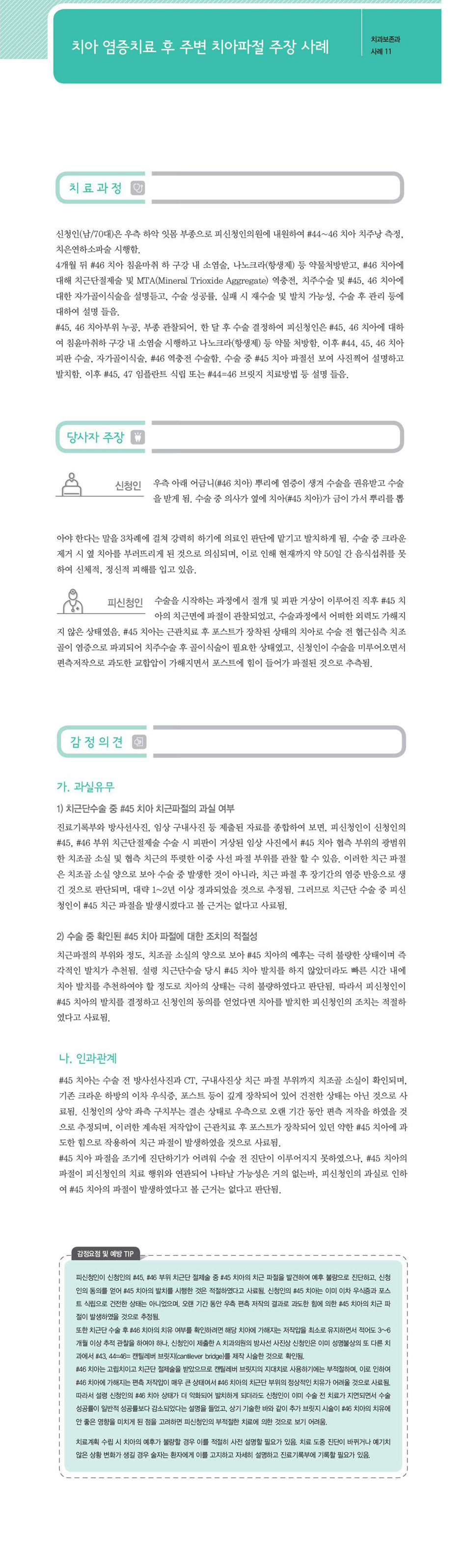 "[ 치과 ] [치과-치과보존과] 치아 염증치료 후 주변 치아파절 주장" 상세페이지