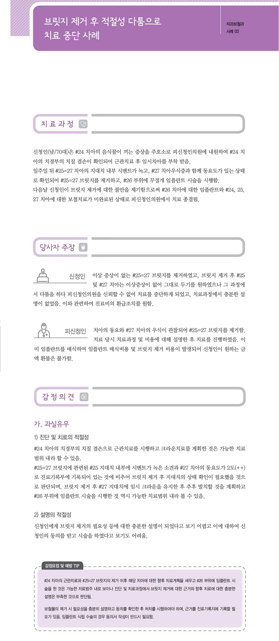 "[ 치과 ] [치과-치과보철과] 브릿지 제거 후 적절성 다툼으로 치료 중단" 상세페이지