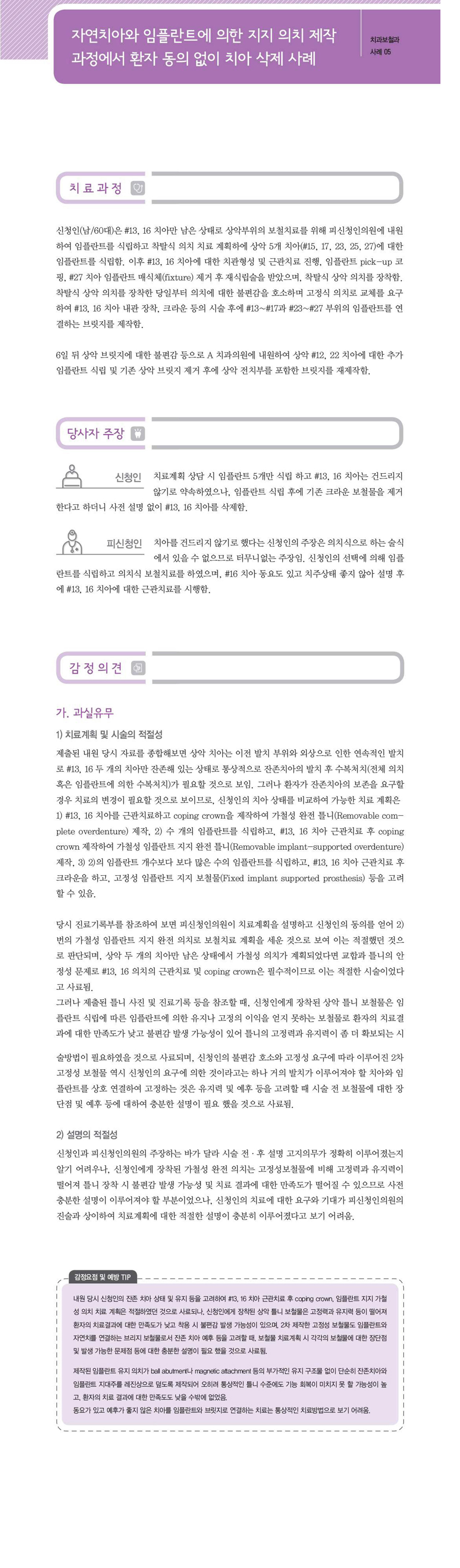 "[ 치과 ] [치과-치과보철과] 자연치아와 임플란트에 의한 지지 의치 제작 과정에서 환자 동의 없이 치아 삭제" 상세페이지