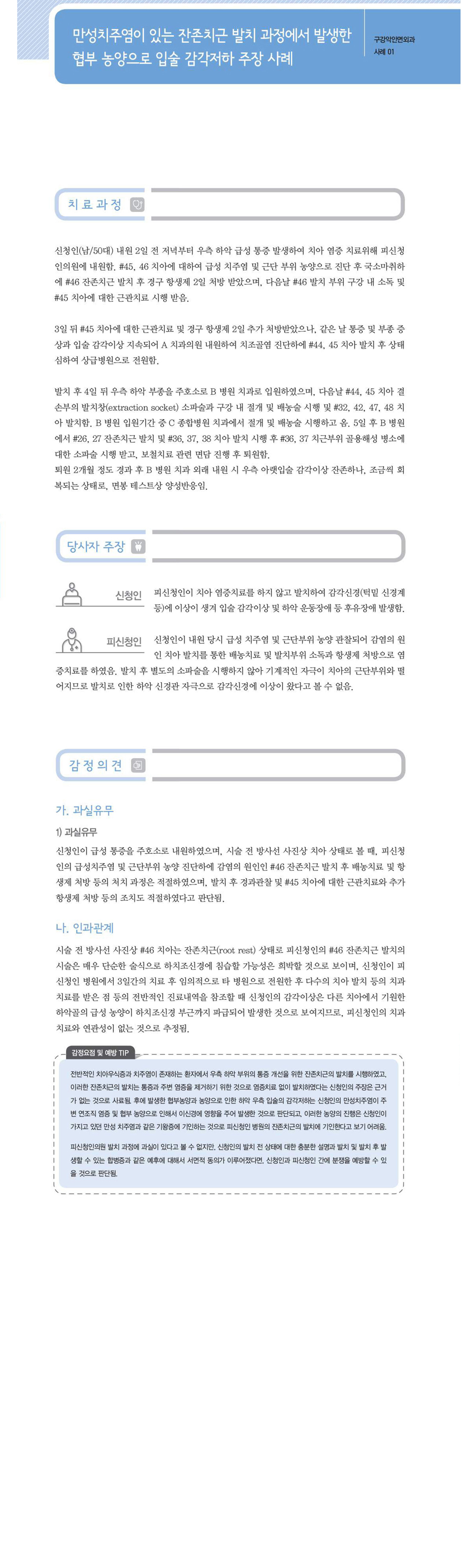 "[ 치과 ] [치과-구강악안면외과] 만성치주염이 있는 잔존치근 발치 과정에서 발생한 협부 농양으로 입술 감각저하 주장" 상세페이지