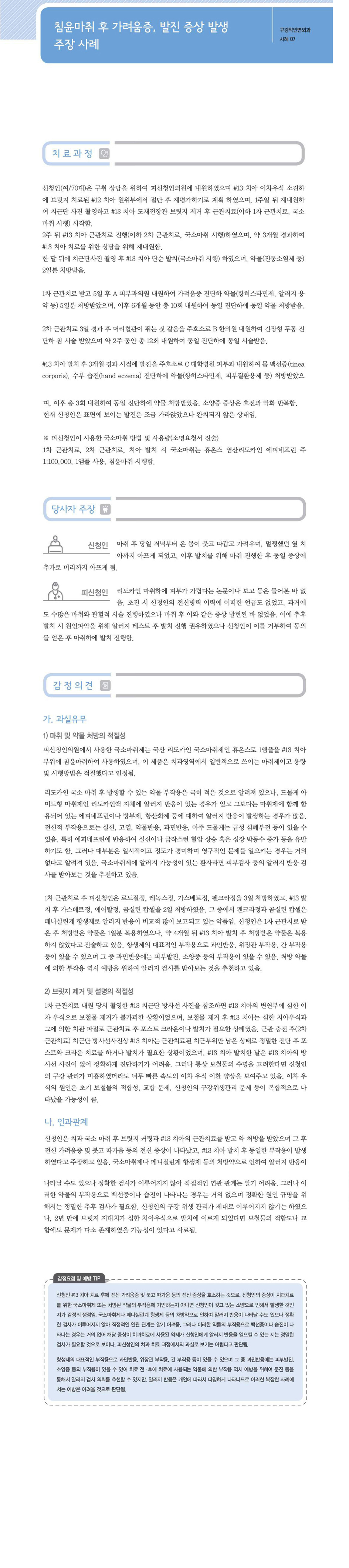 "[ 치과 ] [치과-구강악안면외과] 침윤마취 후 가려움증, 발진 증상 발생 주장" 상세페이지