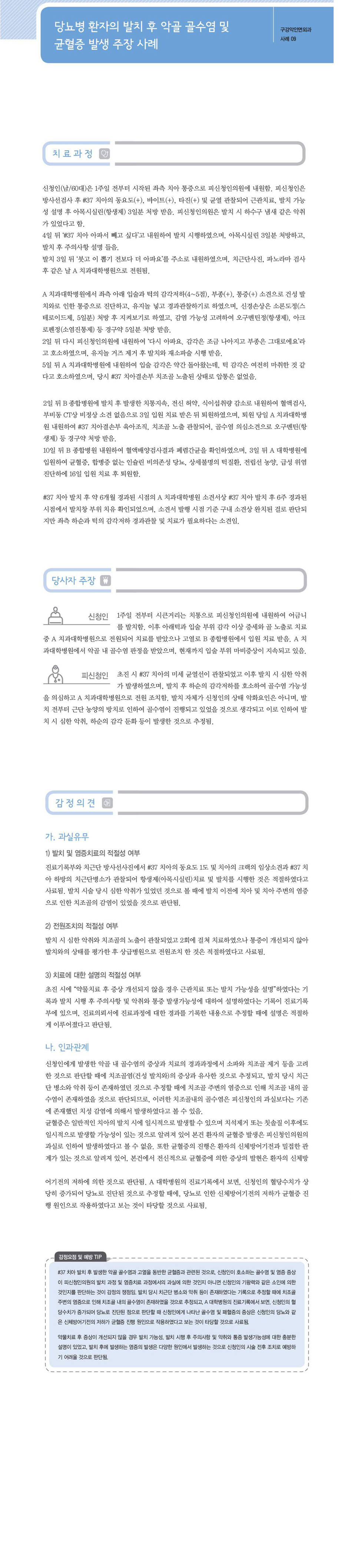 "[ 치과 ] [치과-구강악안면외과] 당뇨병 환자의 발치 후 악골 골수염 및 균혈증 발생 주장" 상세페이지