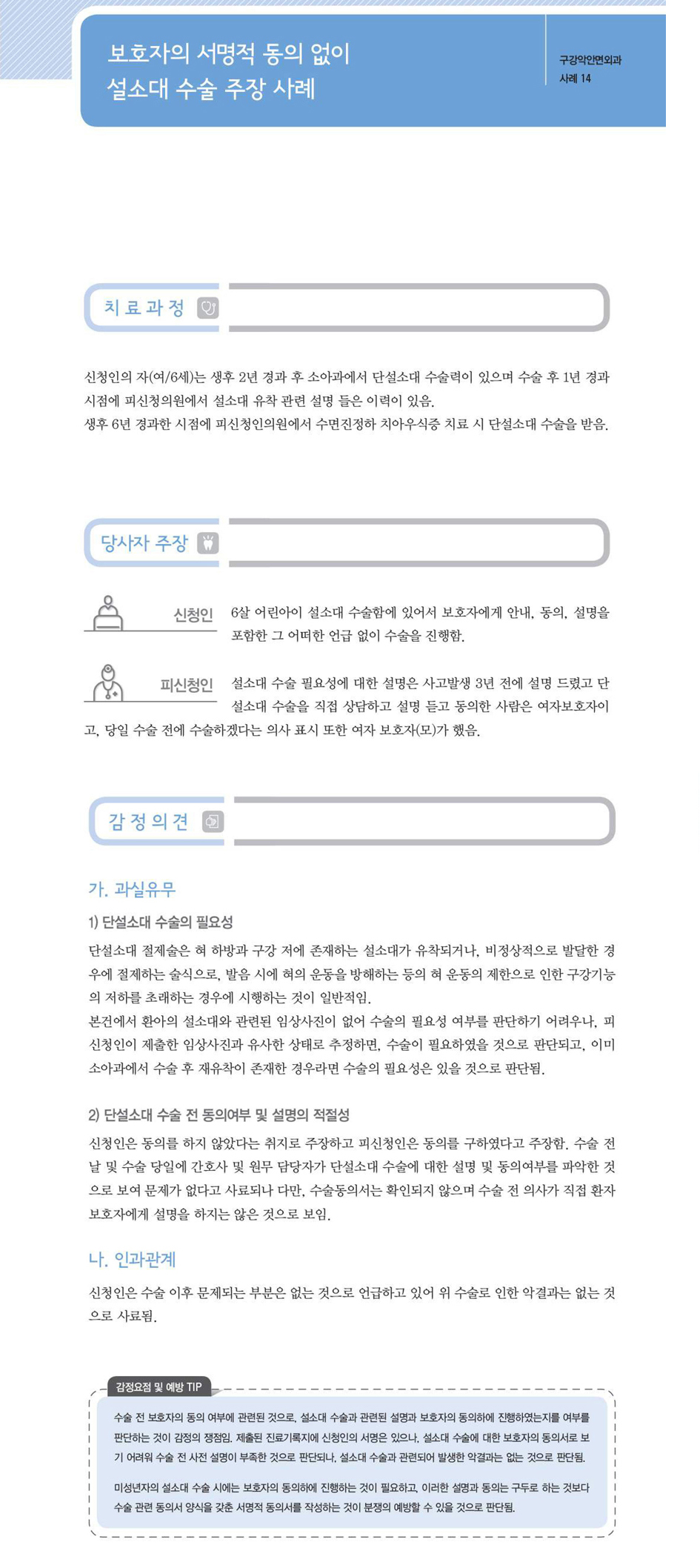 "[ 치과 ] [치과-구강악안면외과] 보호자의 서명적 동의 없이 설소대 수술 주장" 상세페이지