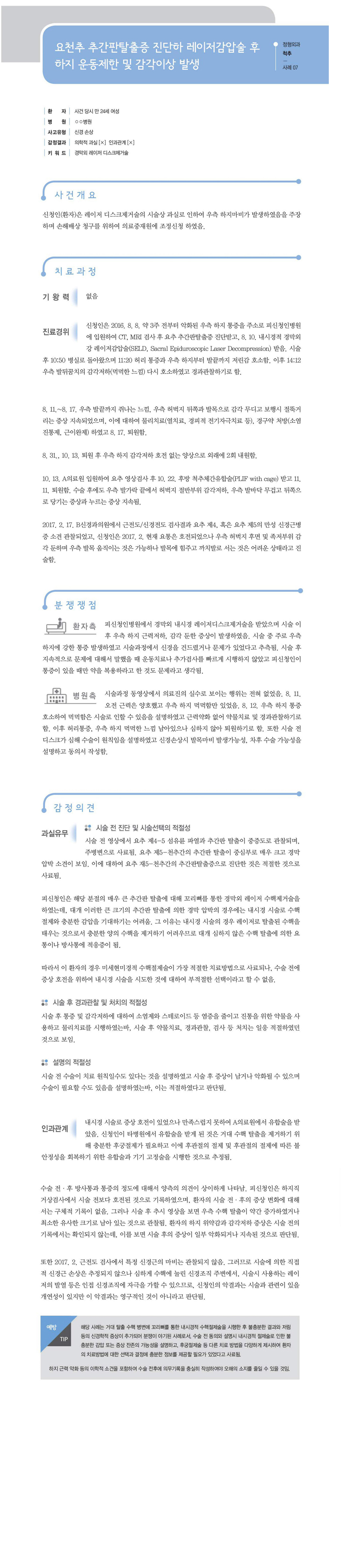 "[ 정형외과 ] [정형외과-척추] 요천추 추간판탈출증 진단하 레이저감압술 후 하지 운동제한 및 감각이상 발생" 상세페이지