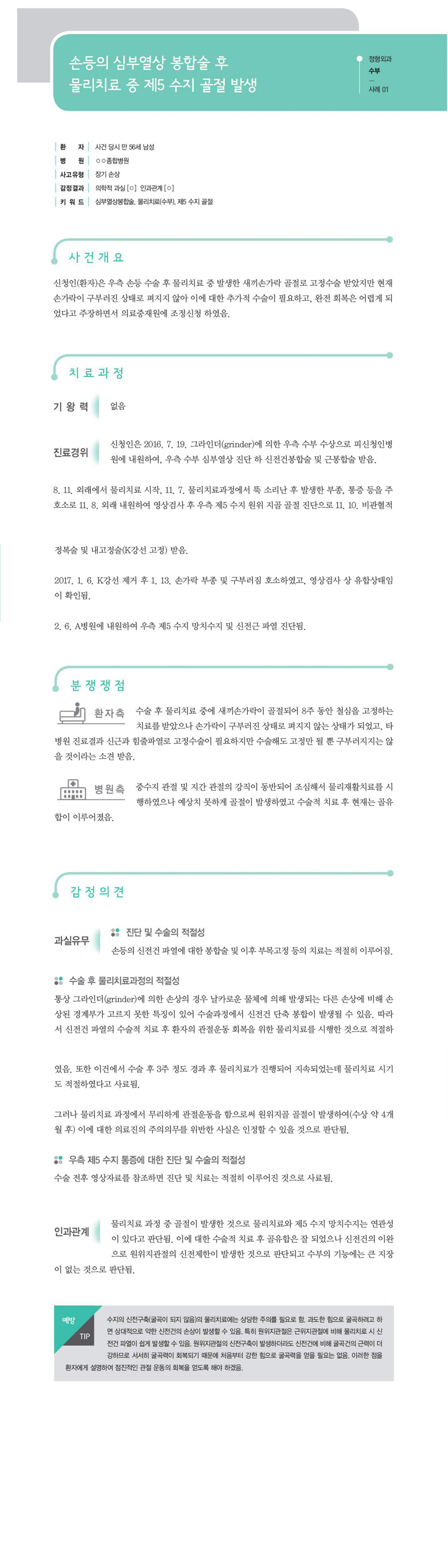 "[ 정형외과 ] [정형외과-수부] 손등의 심부열상 봉합술 후 물리치료 중 제5 수지 골절 발생" 상세페이지