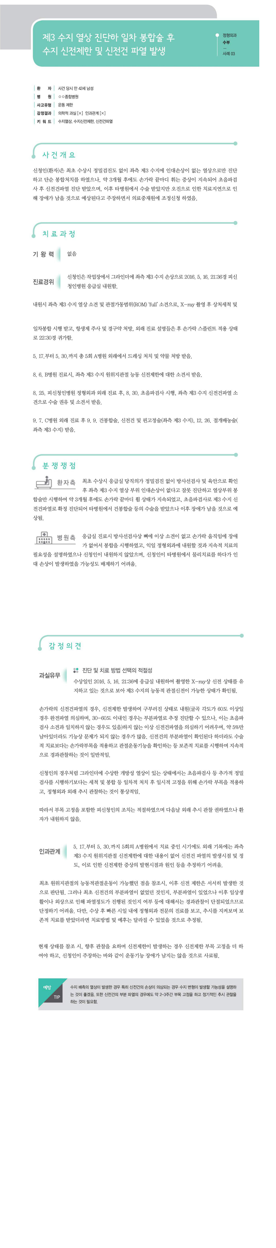 "[ 정형외과 ] [정형외과-수부] 제3 수지 열상 진단하 일차 봉합술 후 수지 신전제한 및 신전건 파열 발생" 상세페이지