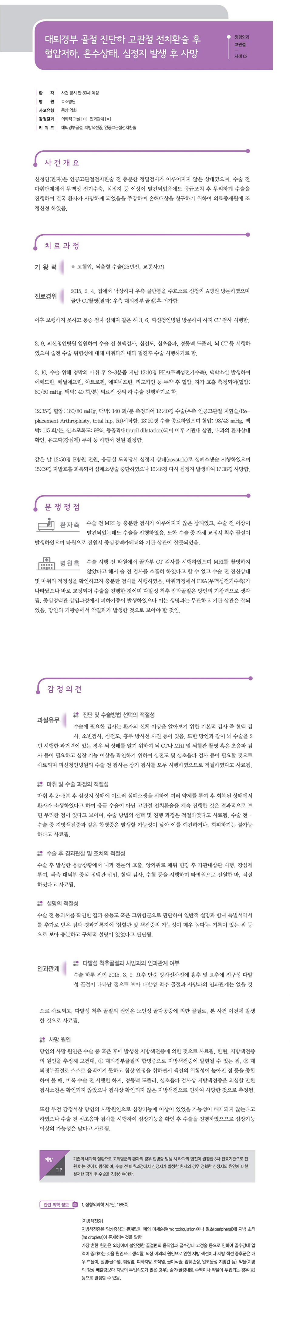 "[ 정형외과 ] [정형외과-고관절] 대퇴경부 골절 진단하 고관절 전치환수 후 혈압저하, 혼수상태, 심정지 발생 후 사망" 상세페이지