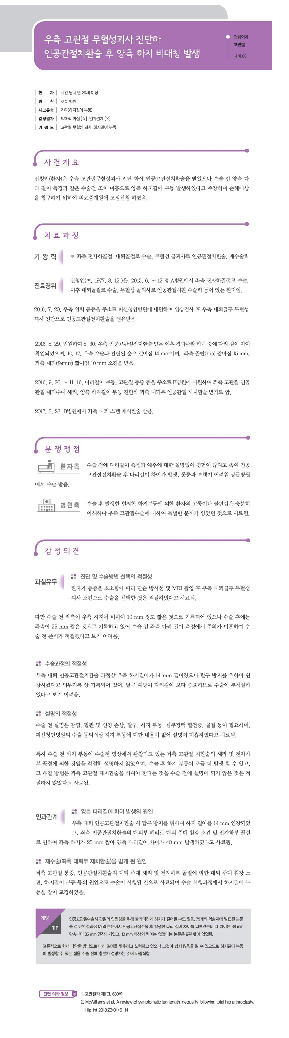 "[ 정형외과 ] [정형외과-고관절] 우측 고관절 무혈성괴사 진단하 인공관절치환술 후 양측 하지 비대칭 발생" 상세페이지