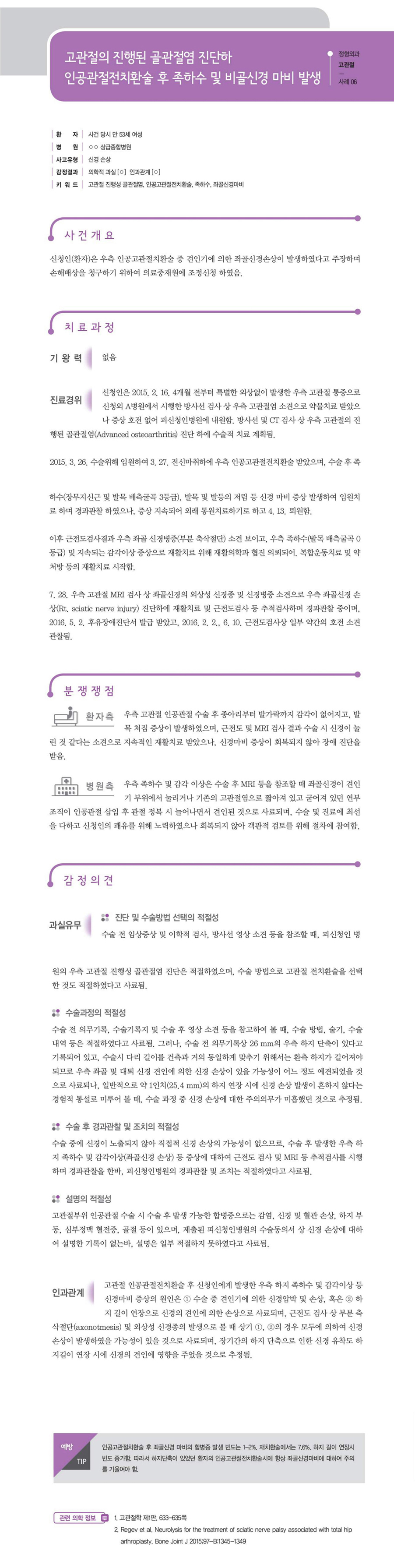 [정형외과-고관절] 고관절 퇴행성관절염 진단하 인공관절치환술 후 좌골 신경손상 및 마비 발생