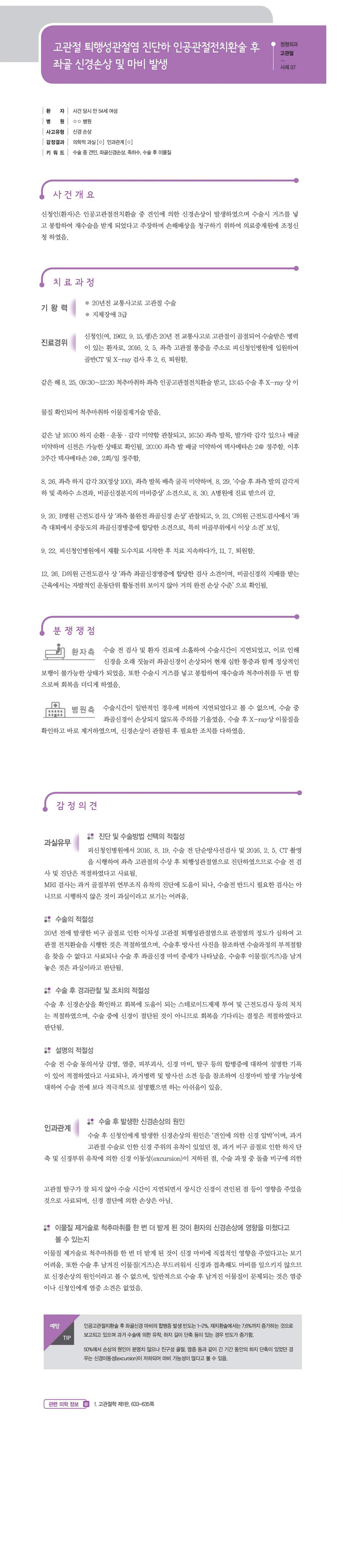 "[ 정형외과 ] [정형외과-고관절] 고관절 퇴행성관절염 진단하 인공관절치환술 후 좌골 신경손상 및 마비 발생" 상세페이지