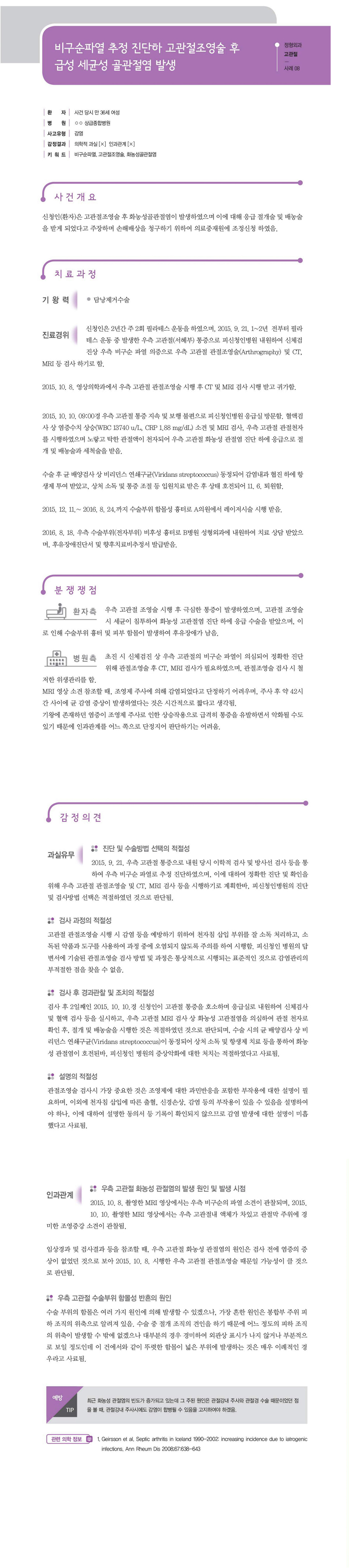 "[ 정형외과 ] [정형외과-고관절] 비구순 파열 추정 진단하 고관절조영술 후 급성 세균성 골관절염 발생" 상세페이지