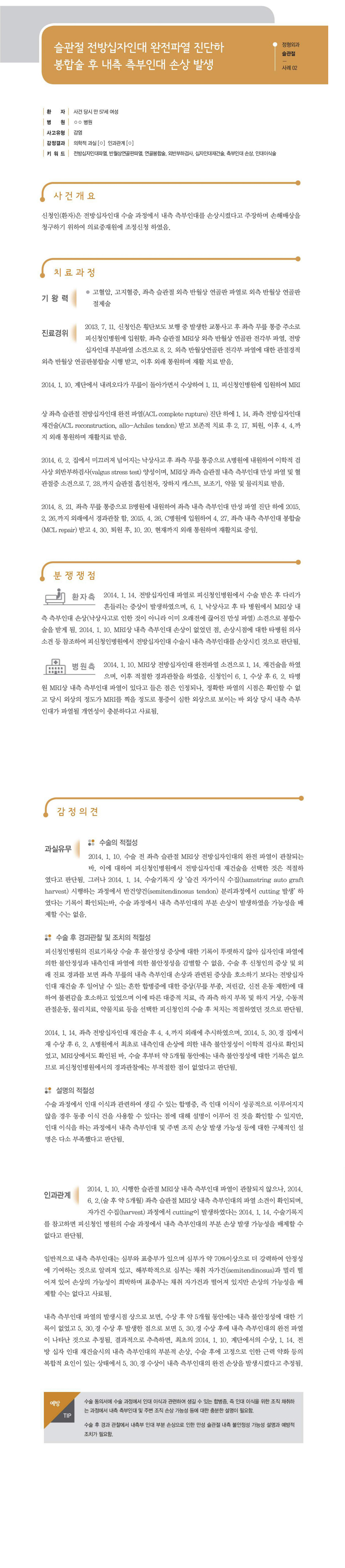 "[ 정형외과 ] [정형외과-슬관절] 슬관절 전방십자인대 완전파열 진단하 봉합술 후 측부인대 손상 발생" 상세페이지