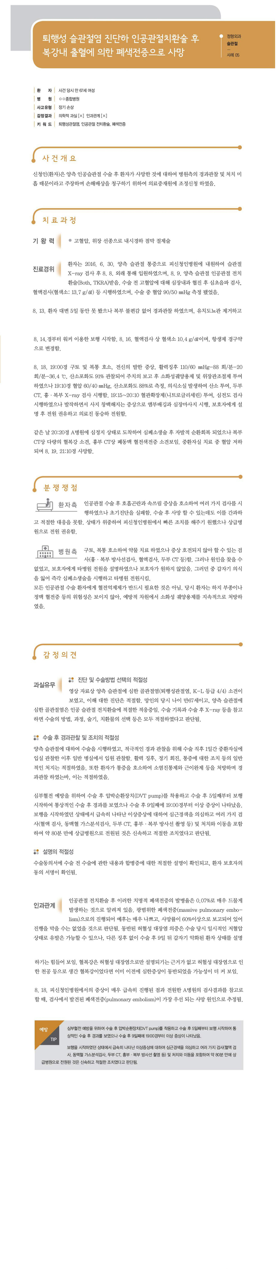 [ 정형외과 ] [정형외과-슬관절] 슬관절 퇴행성관절염 진단하 인공관절치환술 후 복강내 출혈에 의한 폐색전증으로 사망