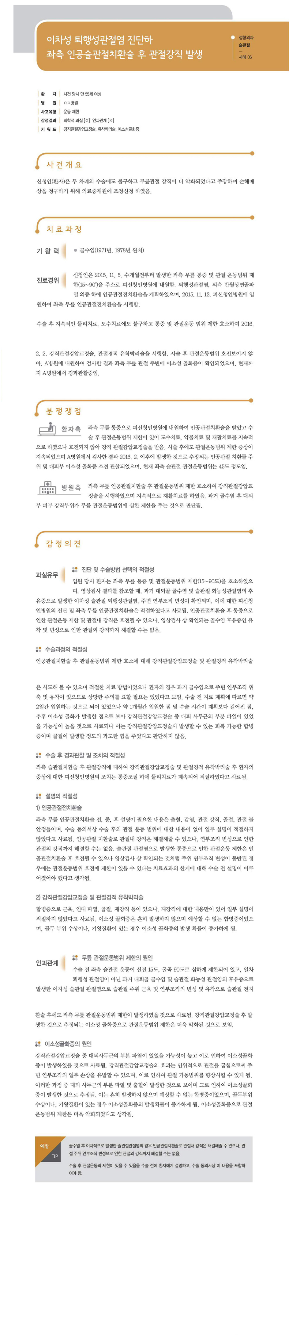 "[ 정형외과 ] [정형외과-슬관절] 이차성 퇴행성관절염 진단하 좌측 인공슬관절치환술 후 관절강직 발생" 상세페이지