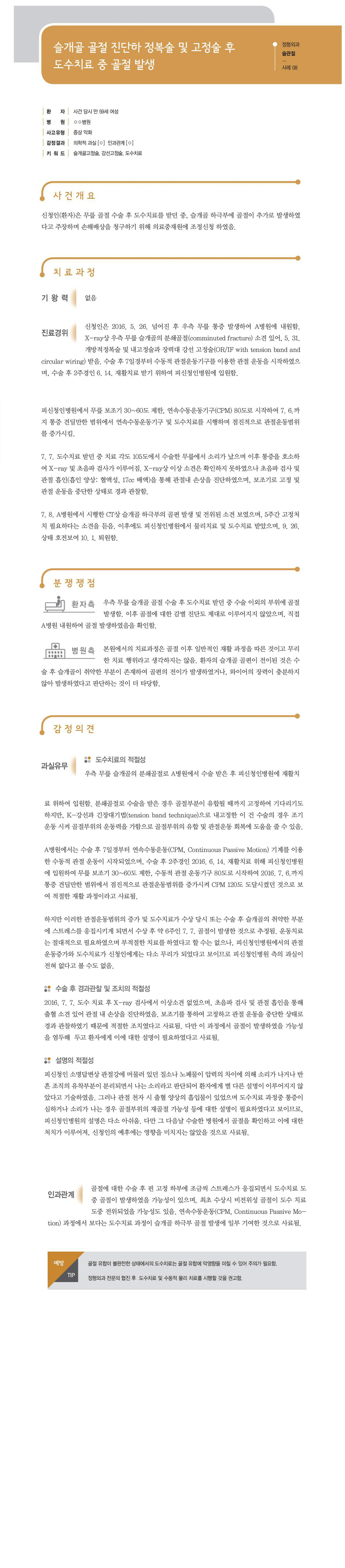 "[ 정형외과 ] [정형외과-슬관절] 슬개골 골절 진단하 정복술 및 고정술 후 도수치료 중 골절 발생" 상세페이지