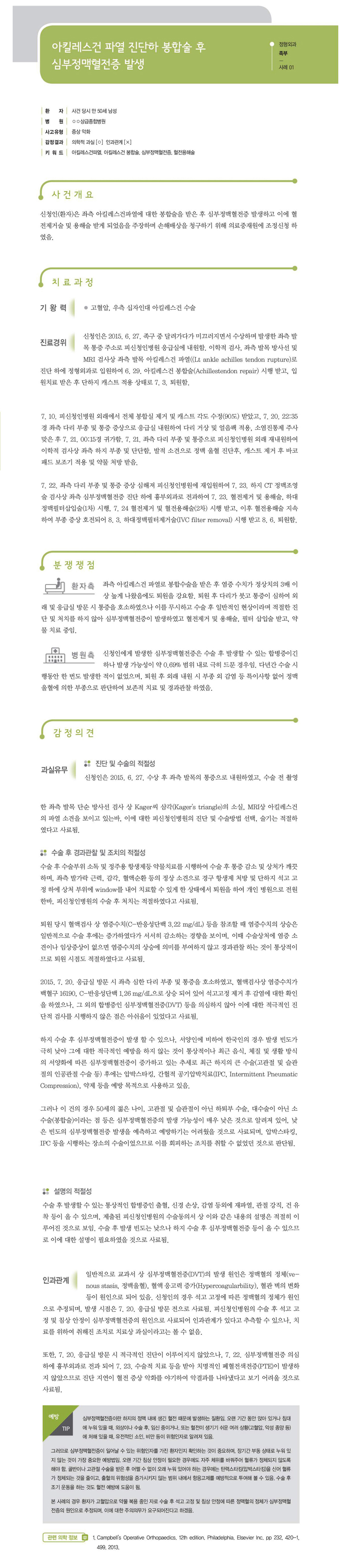 "[ 정형외과 ] [정형외과-족부] 아킬레스건 파열 진단하 봉합술 후 심부정맥혈전증 발생" 상세페이지