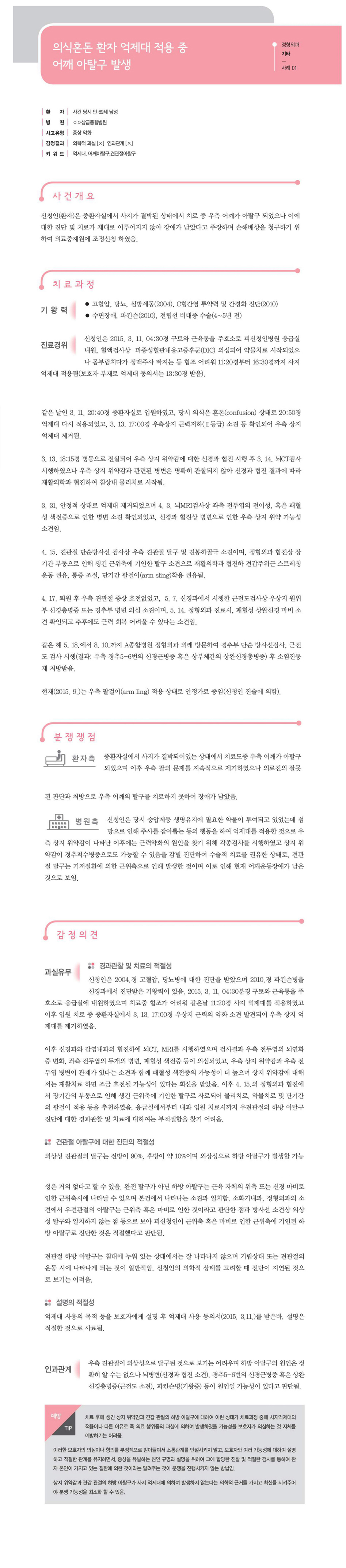 "[ 정형외과 ] [정형외과-기타] 의식혼돈 환자 억제대 적용 중 어깨 아탈구 발생" 상세페이지