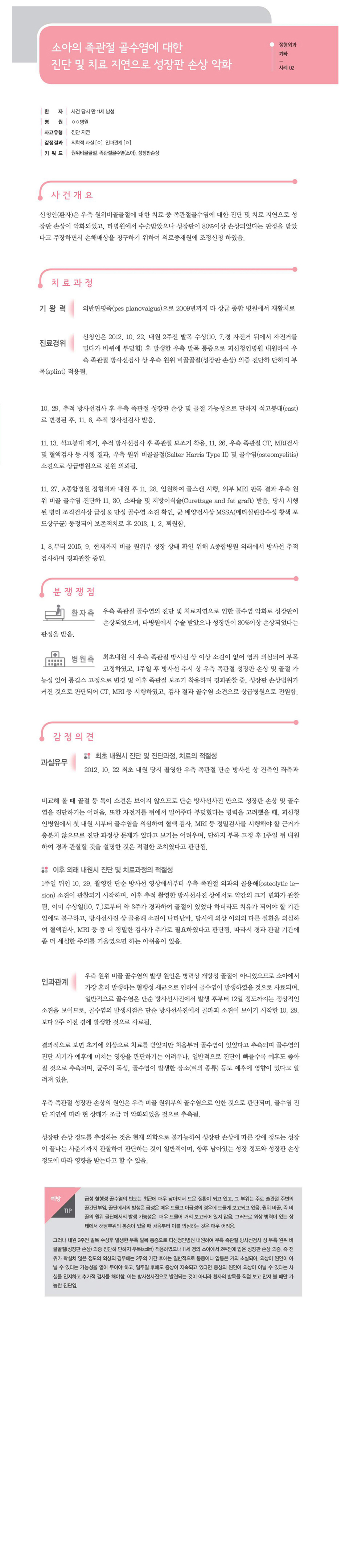 "[ 정형외과 ] [정형외과-기타] 소아의 족관절 골수염에 대한 진단 및 치료 지연으로 성장판 손상 악화" 상세페이지