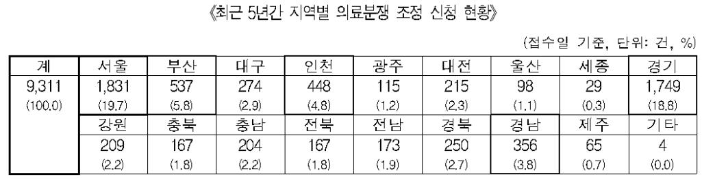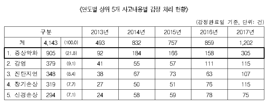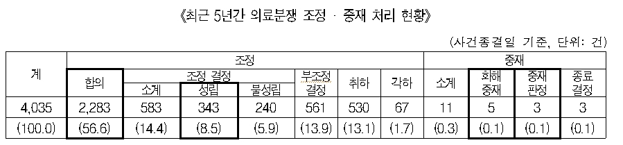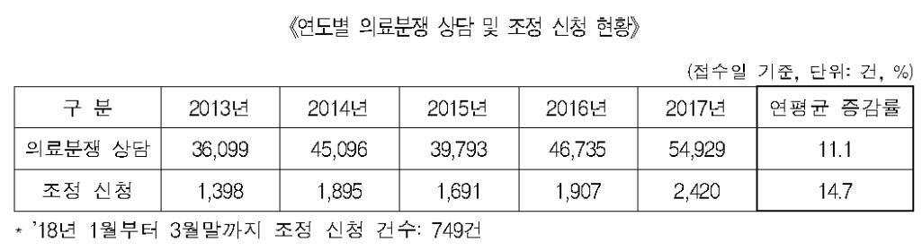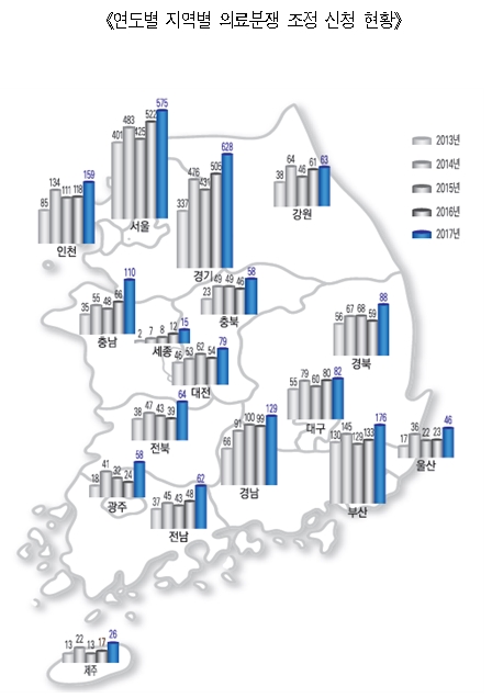 한국의료분쟁조정중재원 「2017년도 의료분쟁 조정·중재 통계연보」발간